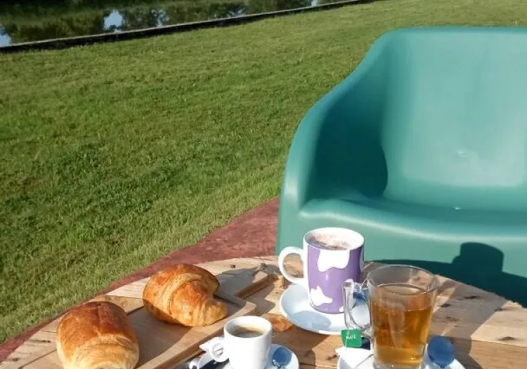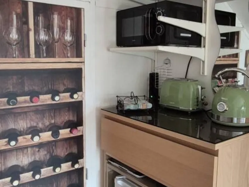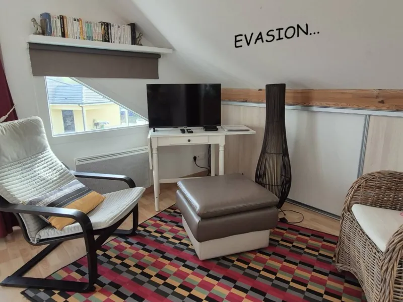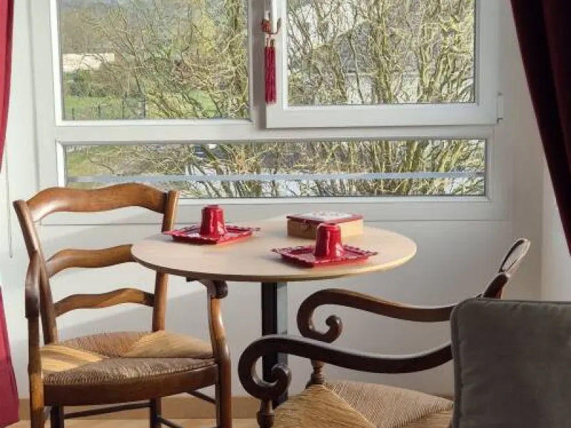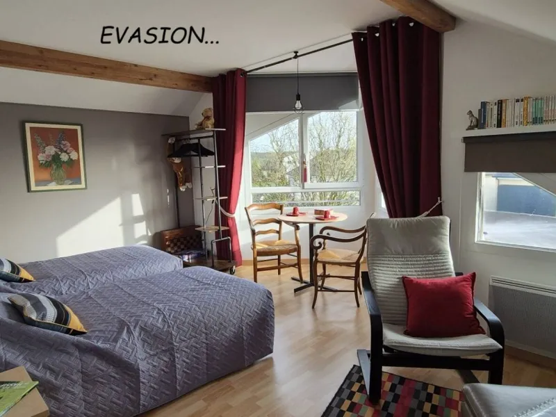 River side, suite "EVASION", equipped with twin beds, wardrobe, TV, dining area, kitchenette with microwave, kettle, toaster, small fridge.