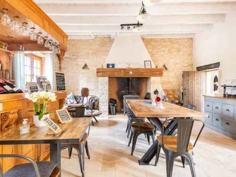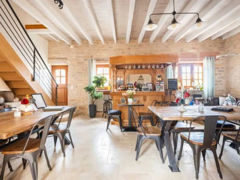 Situated 2 minutes from the centre of Tournus, the property, a 19th century character house entirely restored, consists of 2 buildings, made of local stone. The park, approximately 4000 m², is planted with trees and fenced on all sides. In the centre, a hundred-year-old cedar tree stands. If the house has kept all the charm and authenticity of its old stones, its recent renovation offers a great comfort of stay and relaxation with its spa.Localisation