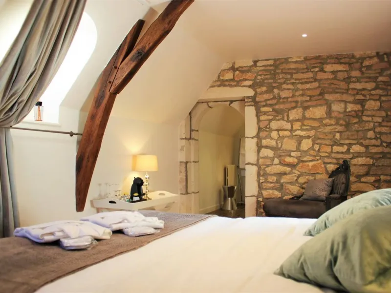 In a unique green setting in the heart of Burgundy, Domaine Pont Juillet invites you to a charming stay of relaxation and gastronomy. Outdoor swimming pool (in season), enclosed car park and wifi are at your disposal free of charge. The rooms are elegantly decorated, combining contemporary and 18th century grandeur. They are equipped with a flat-screen TV, minibar and hospitality tray. Each has an ensuite bathroom with bath and/or walk-in shower. The two junior suites can accommodate an additional child (max. 15 years). The Family Suite "Loft", located in the annex, welcomes families of up to 5 people in an intimate and cosy atmosphere with all the comforts and breakfast included! You can enjoy your continental buffet breakfast in the room or on the terrace, in the shade or in the sun. The establishment is ideally located halfway between Beaune (15 min) and Chalon-sur-Saône (10 min - nearest exit A6 n° 25) and only a few minutes by car from several restaurants, some of which are gastronomic or even Michelin starred, such as Lameloise in Chagny. Our beautiful vaulted cellars contain a selection of wines from the region and the champagnes from our family estate, tasting in accordance with health regulations by appointment only. Bicycle hire. Pets are allowed in some rooms and only on request and prior approval. Domaine Pont Juillet is the ideal starting point to discover this magnificent region.Localisation