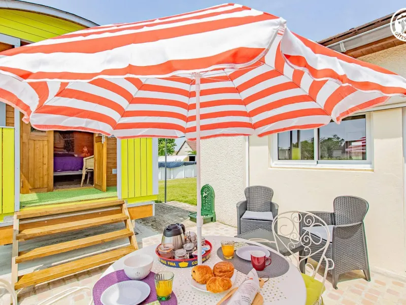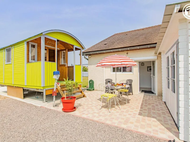 Marie-Claude & Christian welcome you to an unusual caravan adjoining their charming "eighties" pavilion, in complete privacy, on a beautiful 5000m² property, carefully landscaped with grass, vegetation, flowers & trees, located in the heart of the gentle peri-urban Chalonnaise countryside, on the very route of various Greenways (running alongside the house), in the heart of the Val de Saône, a soothing preserved setting mixing viticulture, agriculture & the great outdoors. Peace and tranquility abound, nestled on the edge of fields and wooded meadows within a peaceful rural residential hamlet, on the outskirts of a small market town, a stone's throw from a vast national forest dotted with ponds, the literal "green lung" of the region, adjacent to a vast expanse of wild woodland surrounding Chalon-sur-Saône (perfect for relaxing walks or mountain biking), and very close to the banks of the Saône River (a paradise for anglers and kayakers, a natural area largely protected as a Natura 2000 and ZNIEFF site for its rich flora and fauna). An atypical, colorful, bohemian-style caravan with a warm, rustic charm, a truly cozy and enveloping "cocoon," complemented by a very comfortable annex converted into a guest apartment. A pleasant, spacious private terrace offers complete privacy, with both sun and shade.Composition: Gypsy caravan next to the owners' house (completely independent). Wi-Fi (fiber optic). Electric heating. Air conditioning. Bedroom area in the caravan (double bed 140x190cm / raised ground floor, 4 steps with a sheltered awning). Private annex on the ground floor of the owners' house (directly accessible from the caravan) including a fully equipped kitchen (induction hob + microwave + fridge/freezer), shower room (shower/WC) & laundry area (washing machine). Sheltered balcony + terrace + bicycle storage + private parking. Shared garden/courtyard (2000m²). Restaurant, mini-market & small shops 1.5 km. Supermarket 5 km.
