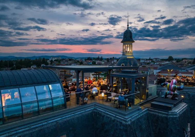 The hotel, with 69 rooms and suites, is located in the very centre of Mâcon, in a superb building erected over 100 years ago.Its rooftop SKYBAR 360 offers a unique view of Mâcon, the Saône and Mont-Blanc.