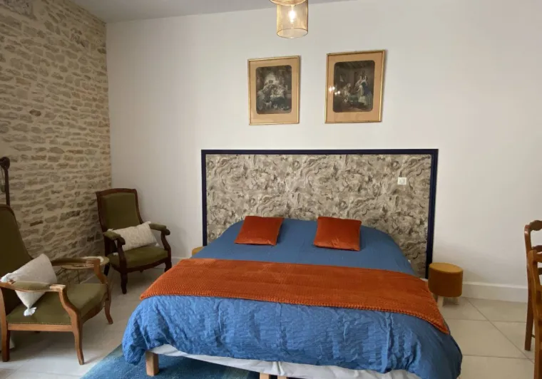 A cellar atmosphere in pastel and burgundy shades, reminiscent of stone and the velvety texture of wine. You're sure to appreciate some of the authentic decorative features that will make you want to go wine tasting and discover the cellars of the Mâconnais and Beaujolais regions!