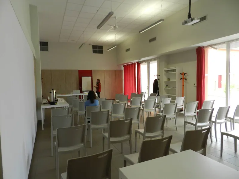 POUR VOS RÉUNIONS ET SÉMINAIRESLa salle d’activité « La Confluence » peut accueillir jusqu’à 60 personnes assises. Très lumineuse, cette salle climatisée est équipée de tables, chaises, d’un système de sonorisation, d’un vidéoprojecteur et d’un écran de projection. La location est possible à la journée ou à la demi-journée. Et le parking est situé à 10 mètres !