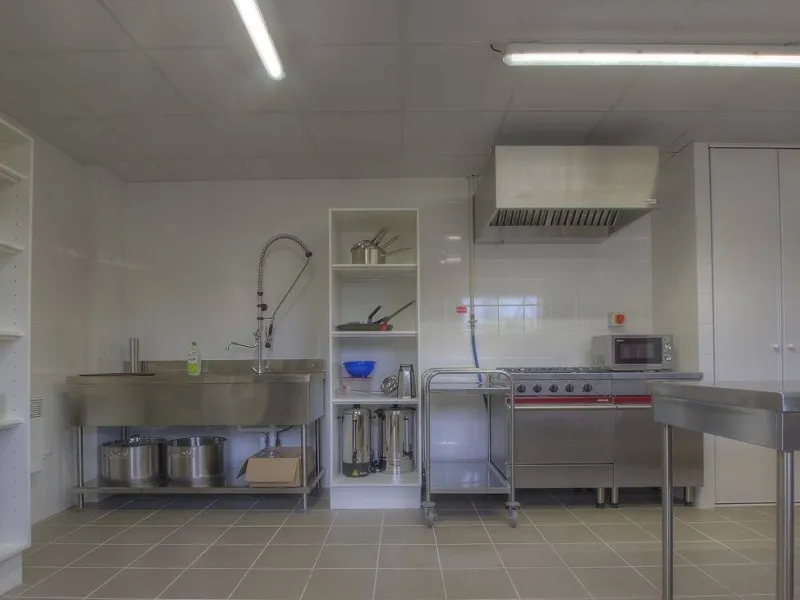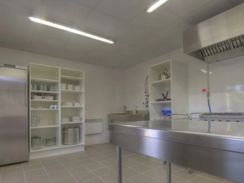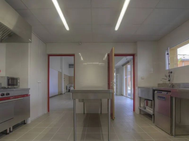 Accolée à cette salle, une cuisine semi-professionnelle est à la disposition des locataires ou du traiteur de votre choix !