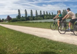 Leaving Mâcon, you start to feel the pull of southern France as you race straight southwards towards Thoissey. Having made the most of visiting this town’s historical and archaeological sites, La Voie Bleue leads you along the east bank of the Saône. Around here, you pass through natural landscapes marked by wetlands and poplar plantations, home to many species of birds. This stage of the route also offers lovely views on the Mâconnais and Beaujolais hills. Along the way, stop at the restaurant at Port de By or at the outdoor leisure lake at Cormoranche-sur-Saône.